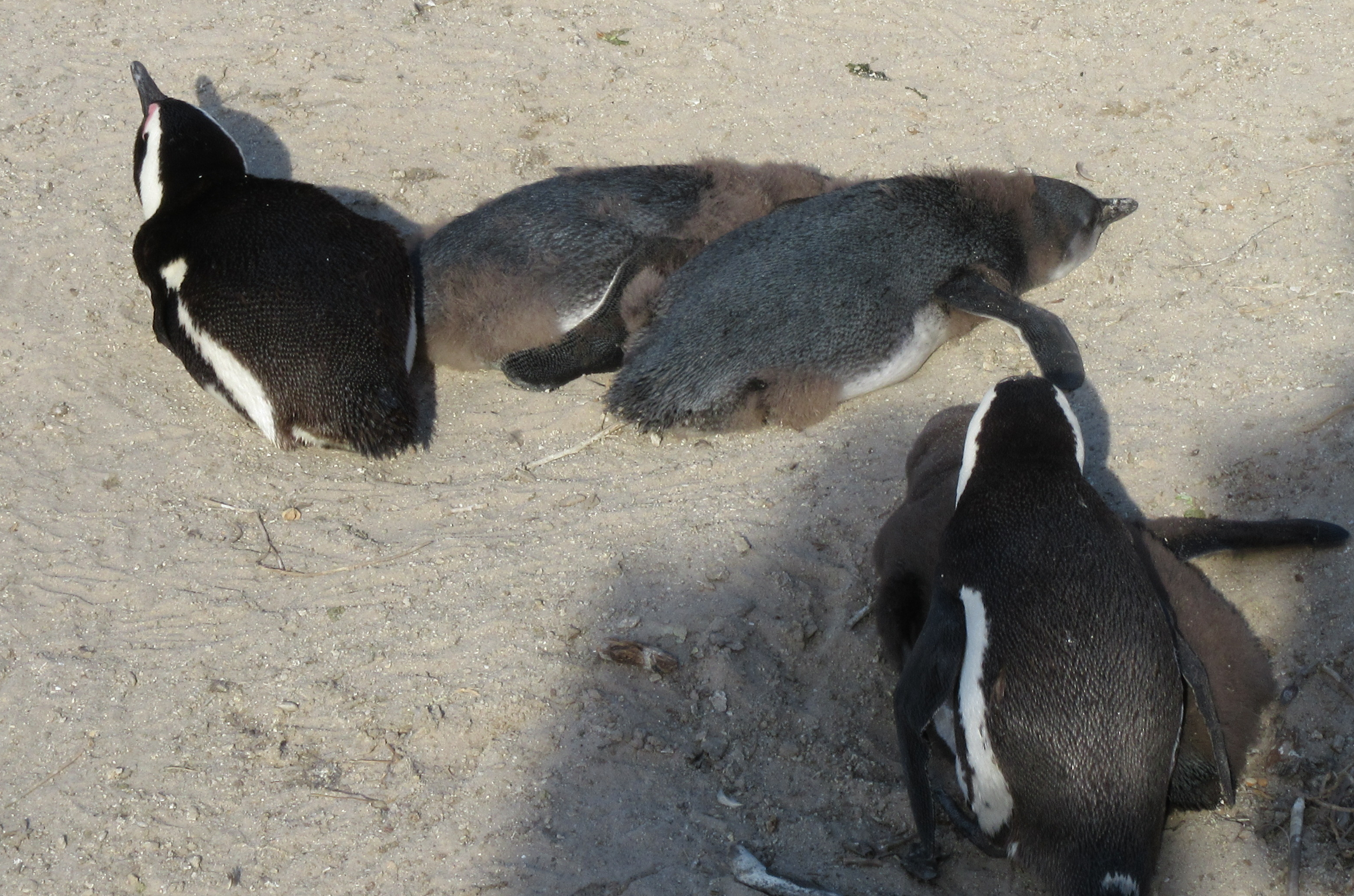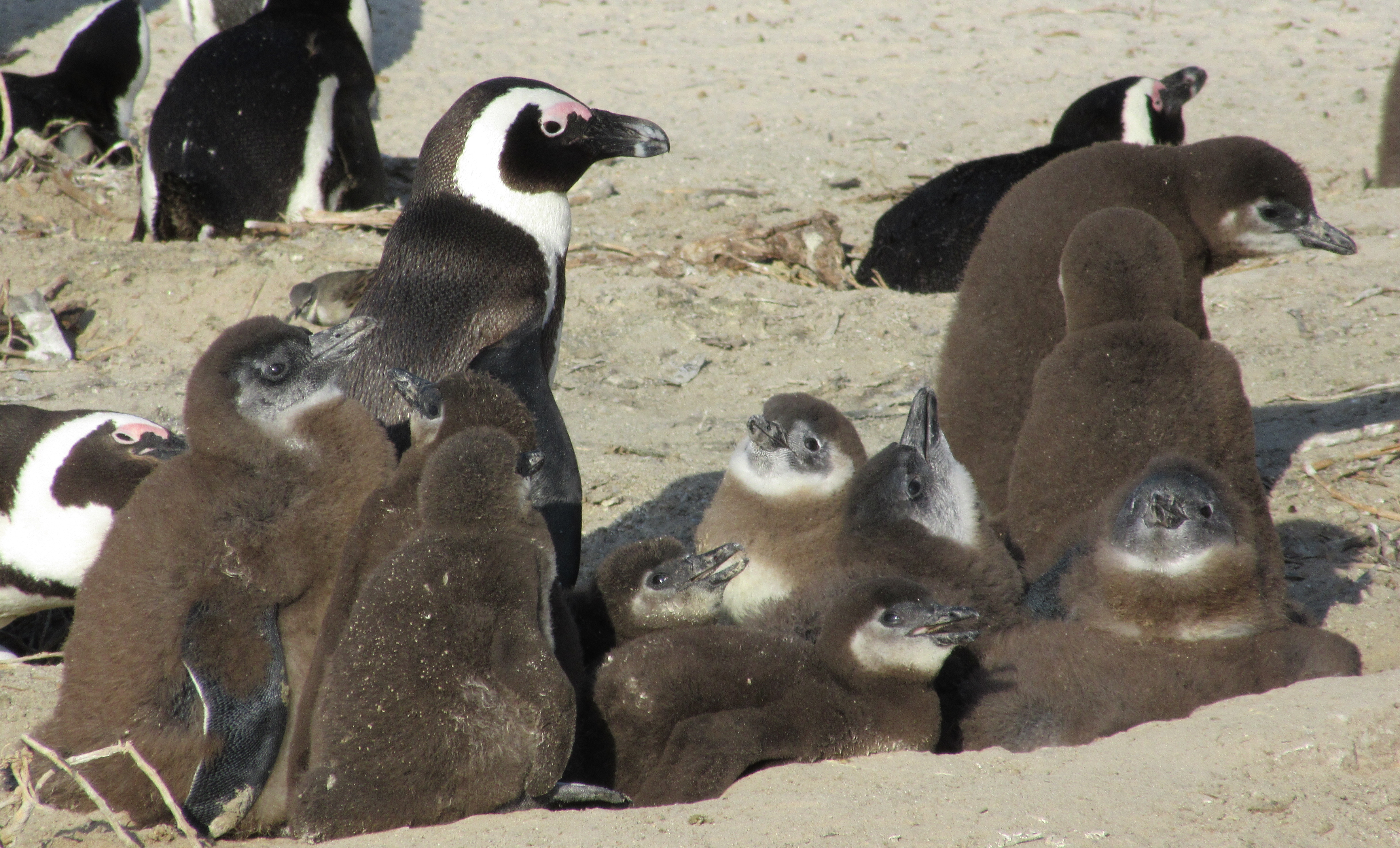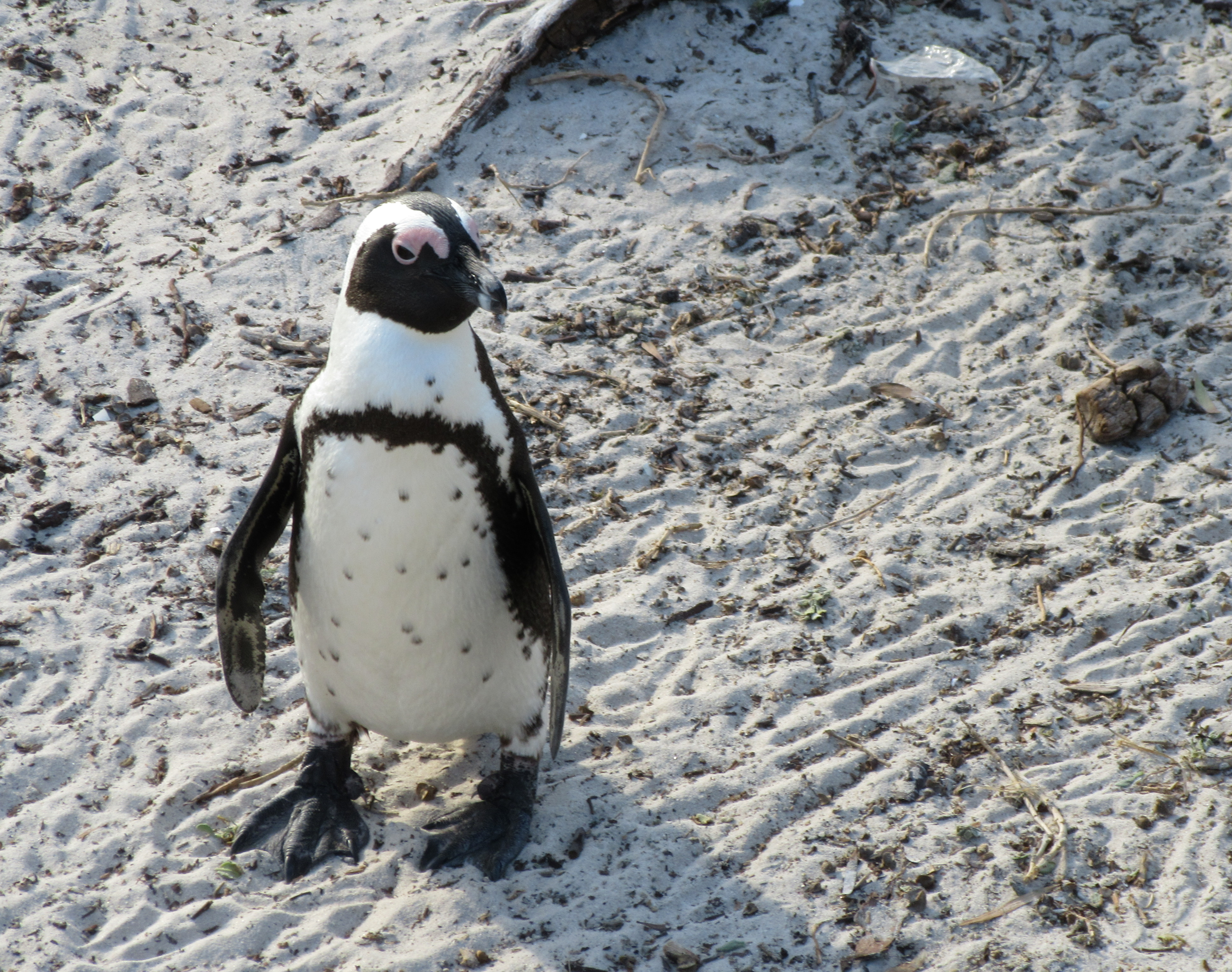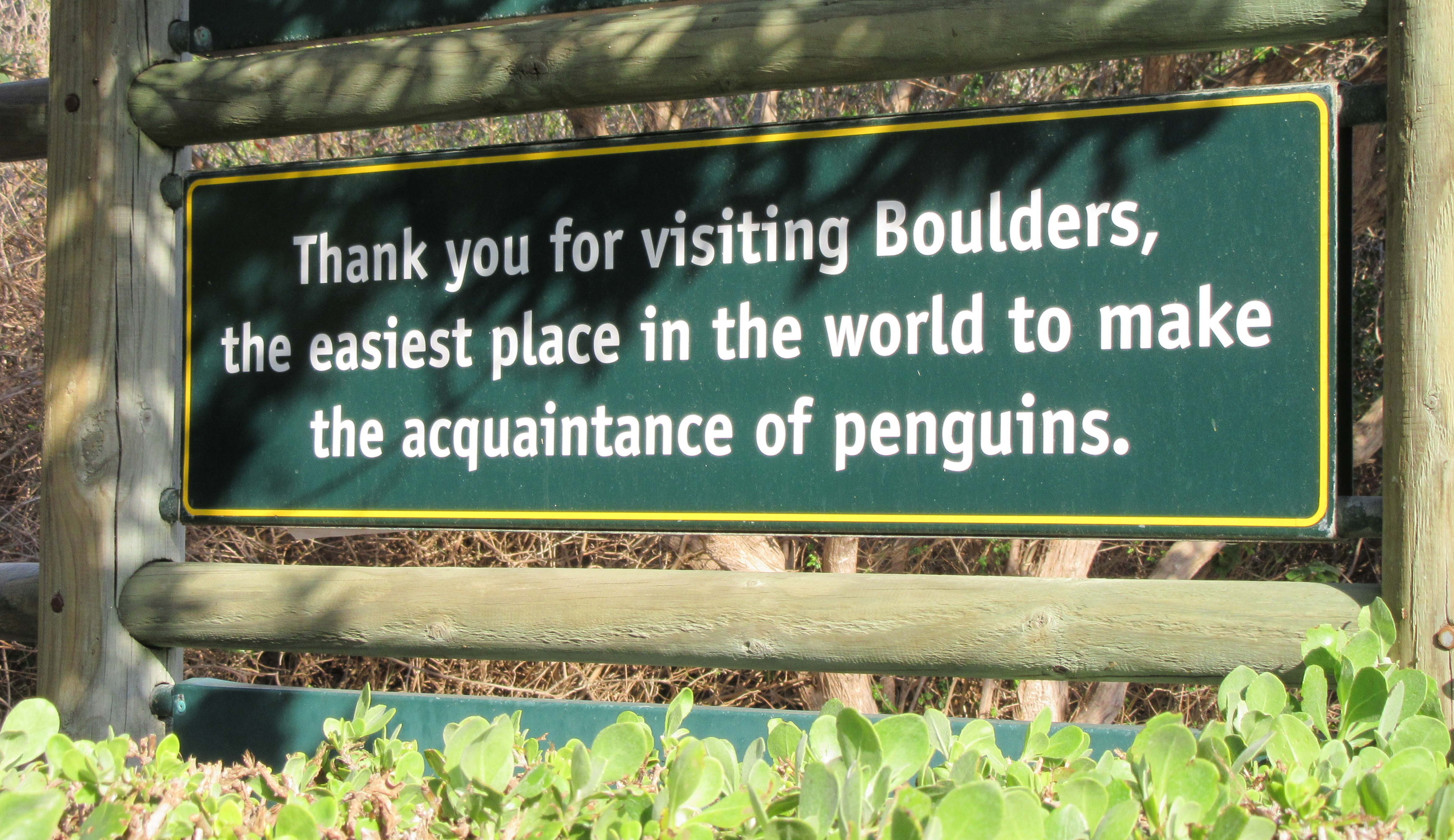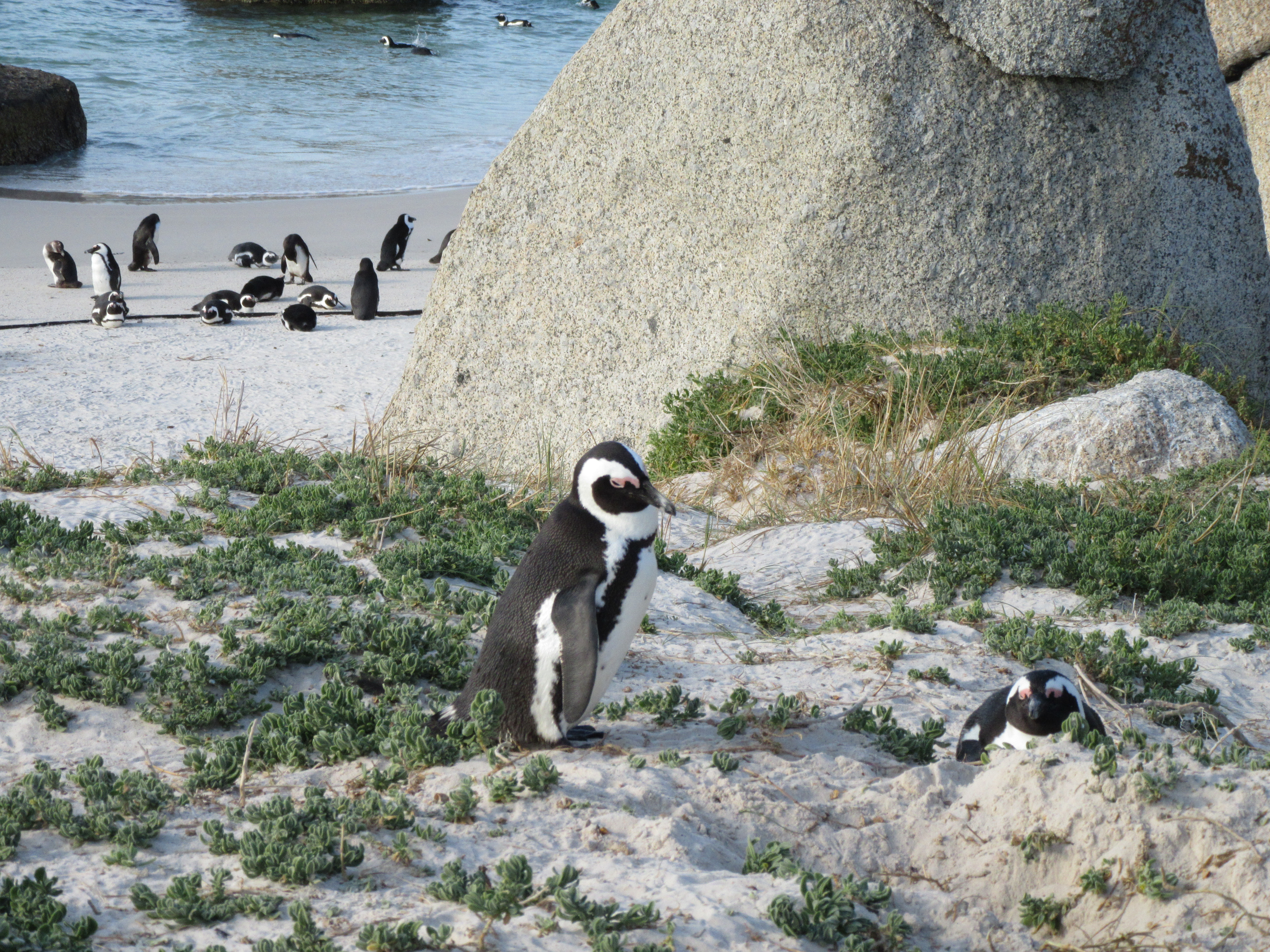 The penguins at Boulders Beach are African Penguins, formerly known as Jackass Penguins. The colony started with two breeding pairs in 1982 and boasts over 2,000 penguins today. However, the population of African Penguins was estimated at about 200,000 in 2000, and had fallen to around 55,000 by 2010 and only about 23,000 as of last year; if that rate of decline continues, they're expected to go extinct within the next fifteen years. So if you're planning a journey to South Africa, this is one attraction you might want to visit before it disappears.