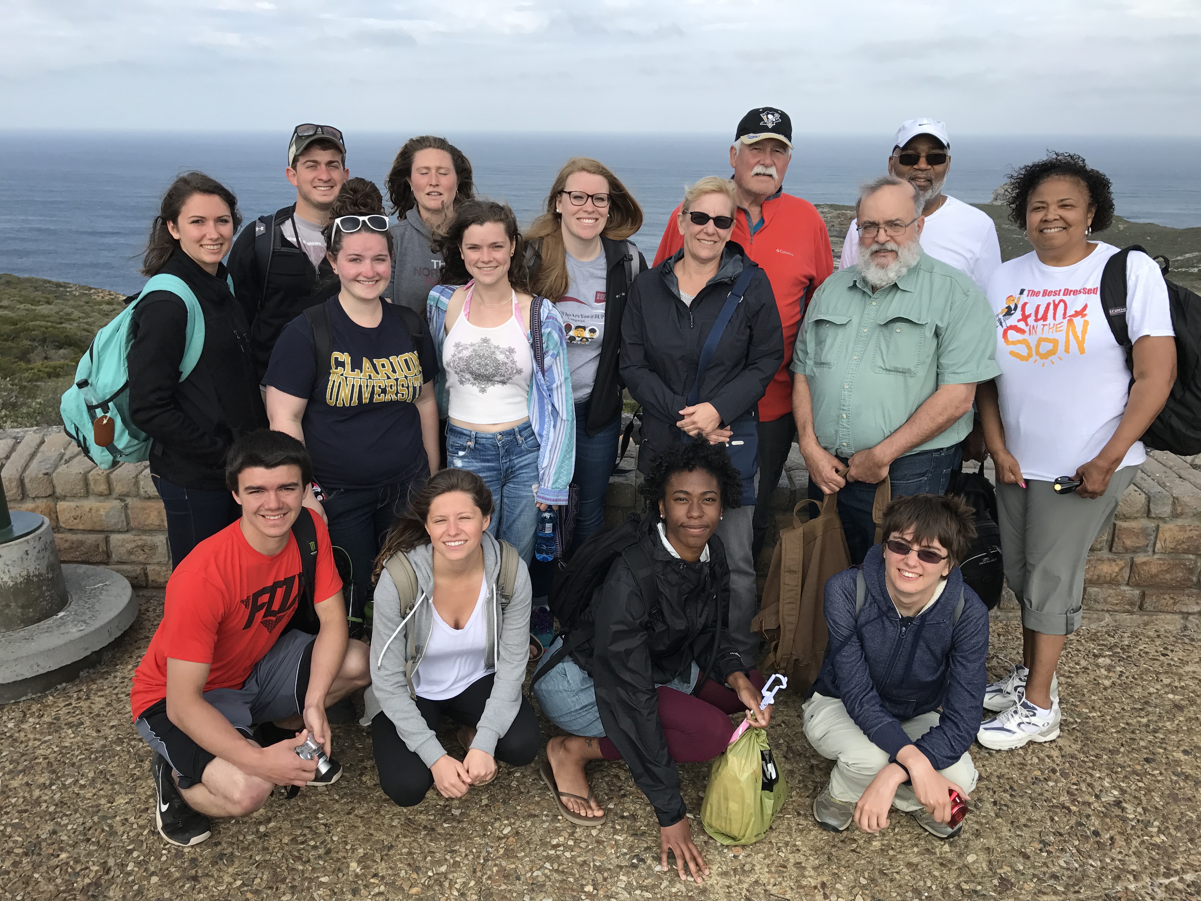 After walking around for a couple of hours most of us were cold, hungry, and a bit exasperated by the constant buffeting of the wind. We all crowded towards the van as soon as it drove up, only to get pushed aside by everyone inside crowding out. We'd be ending our visit with a surprise: a wedding between two of the non-student members of our group. As it turned out, Dr. Jenkins, who'd joined us at Cape Town, was a reverend, and Hank and Dot had decided that they might as well take advantage of the opportunity. There was a brief service just below the Cape; vows were exchanged, and then congratulations, and then it was time for a group picture and to pile back into the warmth of the van at last.
